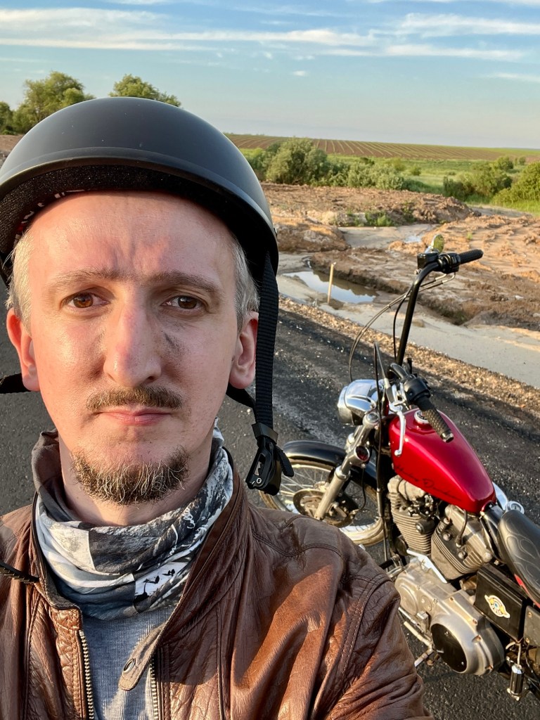 Остановившись и сделав несколько фото, сажусь и мчу дальше. Дальше по пути был лес, в котором я в полной мере ощутил шутки знакомых байкеров, рассказывающих, «что скоро ты научишься отличать насекомых на вкус». Проезжая каждую лесополосу, сперва меня обдавало теплым ароматно-пряным запахом леса а потом начинался достаточно сильный «обстрел» разными насекомыми.