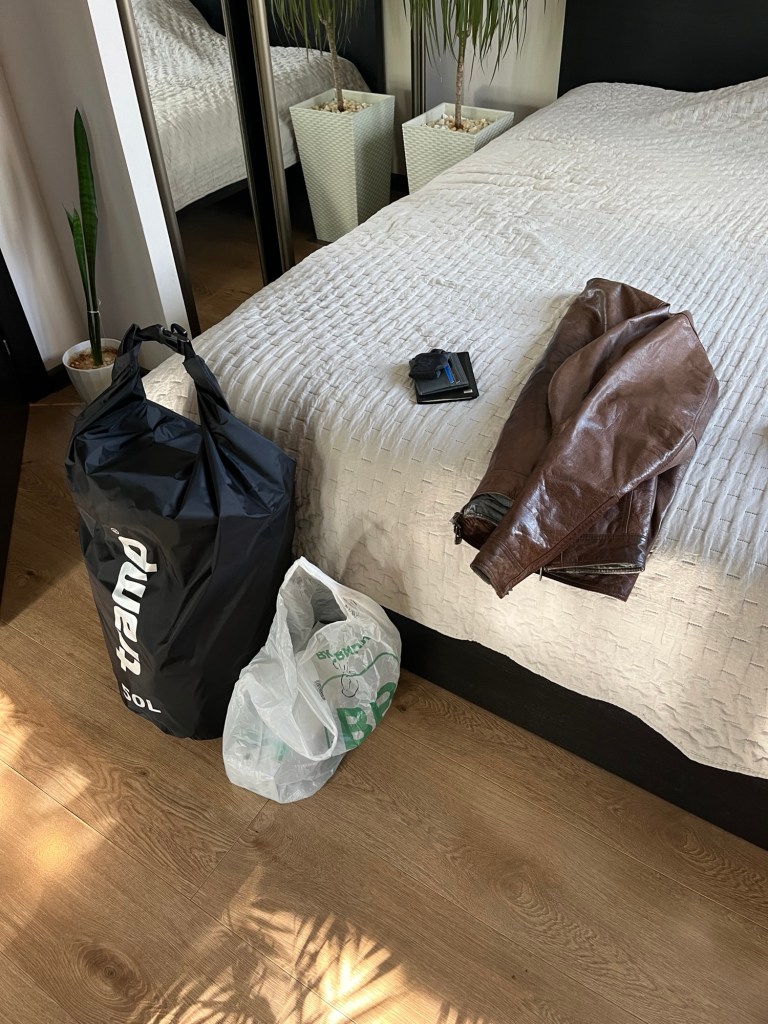 В первый день моего отпуска лил дождь, а во второй день погода выдалась теплой и солнечной, именно в этот день я должен был забрать уже свой байк с сервиса и отправиться в свое первое путешествие. Сегодня 19 июня 24 ого, собрав свои вещи в специальный мешок, я отправился за байком.